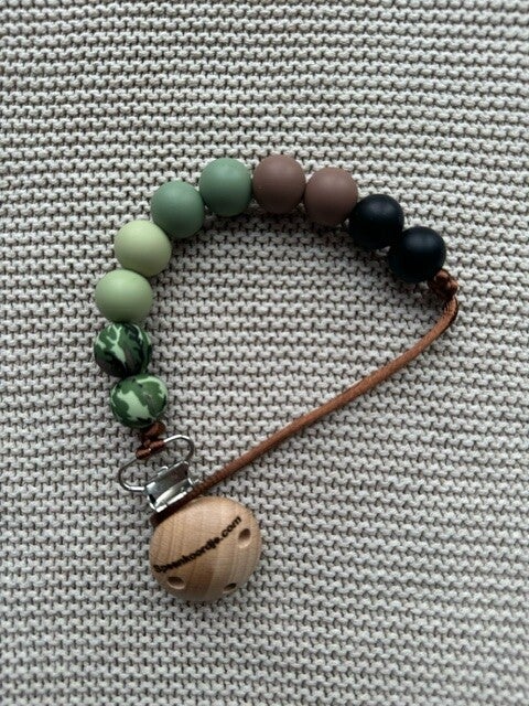 Speenkoordje Army bestaat uit de kleuren groen, bruin en zwart. Een echte eyecatcher voor jou baby. Ideaal voor onderweg, nooit meer een speen kwijt.